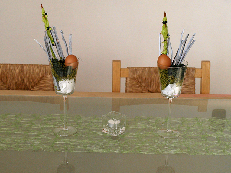 Für den Wohnzimmertisch habe ich nur eine Kleinigkeit gemacht, die sich einfach verschieben, hoch heben oder im Notfall auch abbauen lässt.